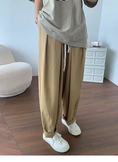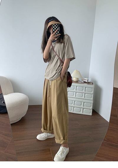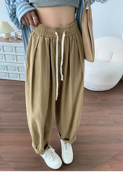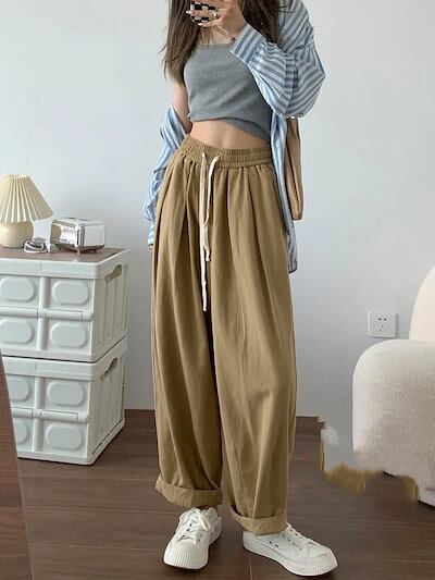 スラックスパンツ?綿 カーゴパンツ レディース 春秋 薄い ハイウェスト 着痩せ 日系 ゆったり コーディネート カジュアル ストレートパンツ ワイドパンツ