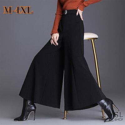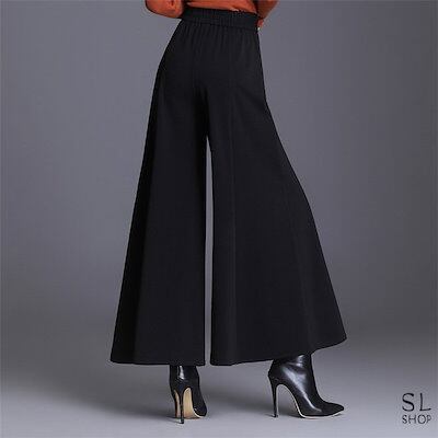 パンツ レディース ワイドパンツ ガウチョパンツ ズボン 衣装 9分丈 黒 OL 仕事 カジュアル