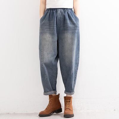 【新品】ワイドパンツ/パンツ/ジーンズ/ゆったり/ジーンズ/レディース/ウエストゴム/ヴィンテージ/レトロ/大きいサイズ/パンツ