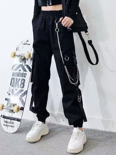 ブラック ズボン本 カーゴパンツ レディース ストレートパンツ ゆったり ハーレムパンツ レディース 着痩せ チェーン