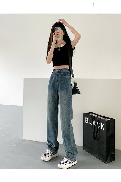 脚長効果! 裏起毛デニムパンツ ジーンズ レディース パンツ ワイドパンツ スキニーモップパンツ 裏起毛 韓国ファッション ズボン秋冬