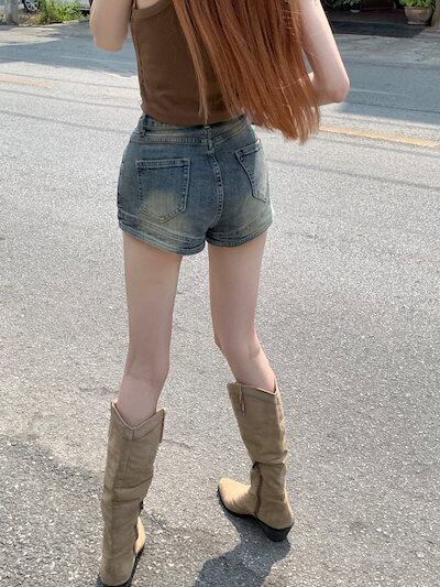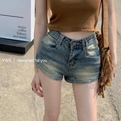 2024 春夏パンツ ショート丈 デニム ジーンズ スリム スキニー ウォッシュ加工 ハイウエスト 美脚効果 脚長効果 細見え 夏 おしゃれ かわいい 韓国ファッション レディース お出かけ | OPEN-korea