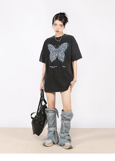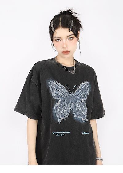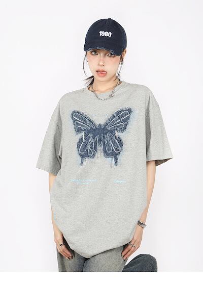 2024 夏 韓国 甘いトップス Tシャツ ファッション 半袖 スリムフィット サイド ペイントシルエット ゆったりコーデ 休日レディースサイズ韓国ネック丈 おしゃれ カジュアル メンズライク T | OPEN-korea