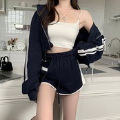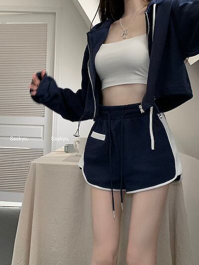 2024 秋 上下2点セット トップス お出かけ 羽織り ショート丈フルラウンドヘム ミニ丈ボトムス ストレート系冬 ゆったりレディースハーフスタイルアップワイドお出かけトラック | OPEN-korea