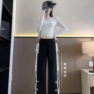 2024パンツ ロング丈 ハイウエスト 美脚効果 脚長効果 細見え 秋 冬 白 ホワイト おしゃれ かわいい 韓国系ファッション レディース お出かけ