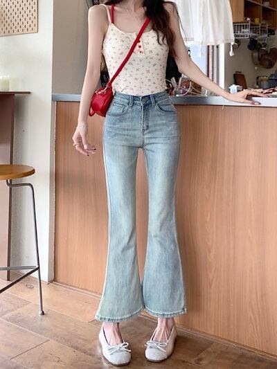 2024春夏パンツ デニム ジーンズ クロップド丈 アンクル丈 ワイドレッグ ハイウエスト 美脚効果 脚長効果 細見え 夏 黒 おしゃれ かわいい 韓国ファッション レディース お出かけ | OPEN-korea