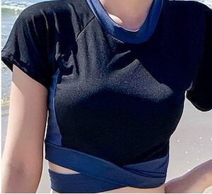 2024 2色 タンキニ ビキニ レディース 黒 バイカラー 体型カバー 水着 袖あり スカート スポーティー S M L XL 韓国 水着 上下セット セパレート カジュアル ミニスカート 半袖 T | OPEN-korea