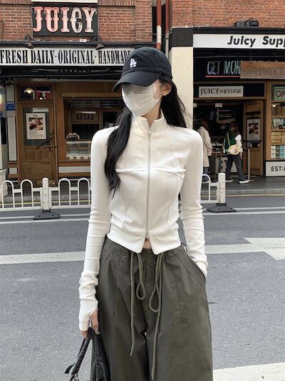 2024秋 アウター ショート ブルゾン かわいい フル ブルゾン トップス ハイ スタンド ショート ストリート レディース 長袖 カジュアル ファッションお出かけトラック | OPEN-korea
