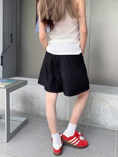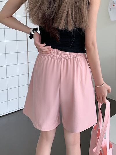 2024 春夏パンツ ハーフパンツ ワイド ストレート ウエストゴム ハイウエスト 美脚効果 脚長効果 細見え 夏 水色 黒 白 おしゃれ かわいい 韓国ファッション レディース お出かけ | OPEN-korea