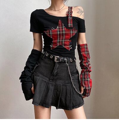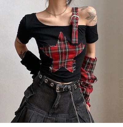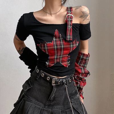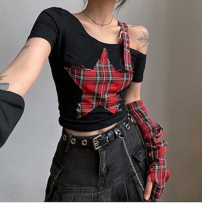 2024春秋 トップス 半袖 可愛い 韓国 Tシャツ ロンT タイト 肌見せフィット 夏 女っぽレディースギンガムチェックファッション系ショート おしゃれ カジュアルセクシー カバー きれいめ付きT星 | OPEN-korea