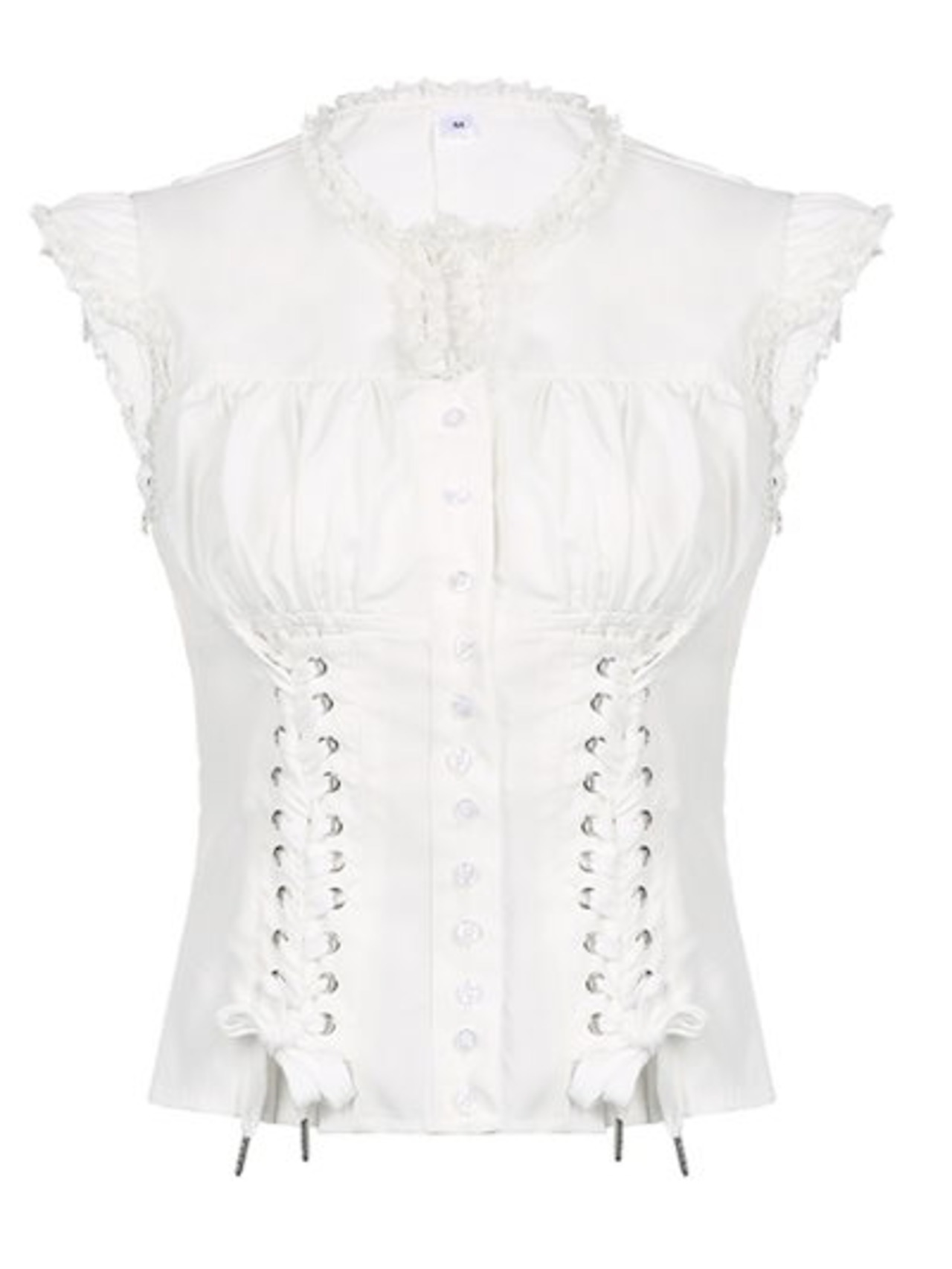 2024夏 韓国トップス シャツ 半袖 スタンドカラー きれいめ ゆったり かわいい おしゃれ 大人っぽい フレンチ きれいめ カジュアル 韓国ファッション系 レディース お出かけスリーブ丈 | OPEN-korea