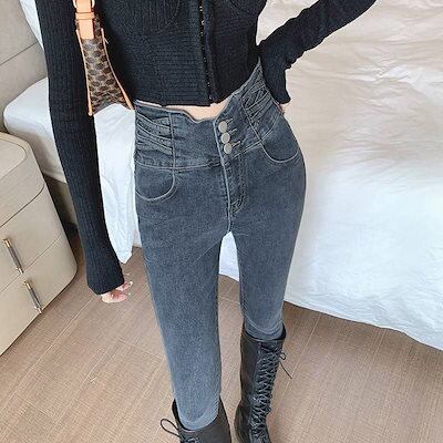 脚長効果!スキニーデニムパンツ レディース ハイウエスト ジーンズ 2024年春秋新作 細身 ストレッチ お腹 タイト 大きいサイズ 韓国ファッション