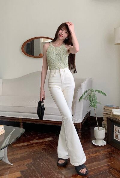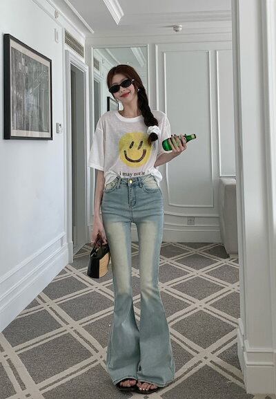 2024春夏パンツ デニム ジーンズ スキニー ワイドレッグ ハイウエスト 脚長効果 美脚効果 細見え ダメージ加工 春 白 水色 カジュアル おしゃれ かわいい 韓国ファッション レディース お出か | OPEN-korea