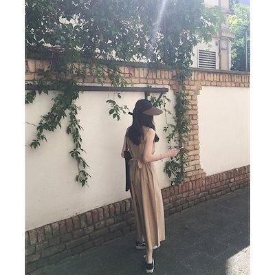 サロペットオーバーオールパンツレディース九分丈ワイドパンツ綿麻春夏ロングズボン無地大きいサイズサロペット304050オシャレ着痩せ