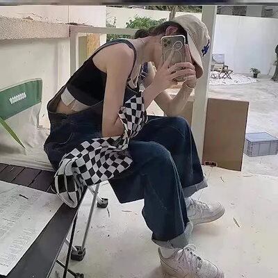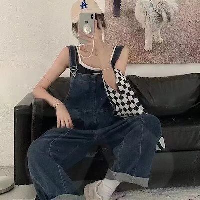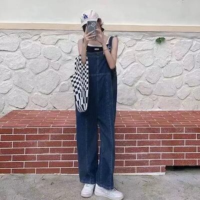 サロペットデニムオーバーオールレディース2024夏の新型日系レトロストリートバックルジーンズゆったりスリムワイドパンツタイツ工装ロングパンツ
