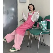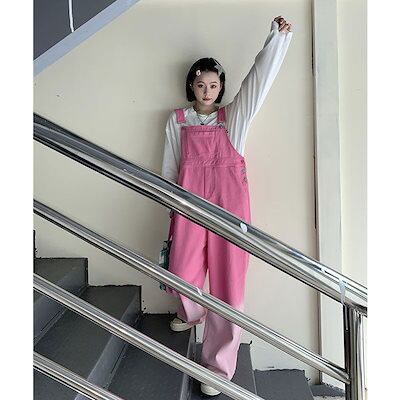 デザイン デニム オーバーオール レディース ストレート ワイドレッグ パンツ 春と秋 薄い レトロ ステッチ グラデーション ジャンプスーツ