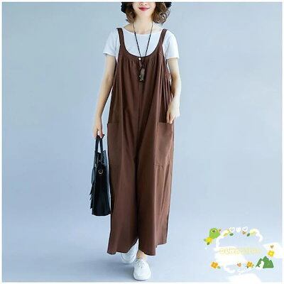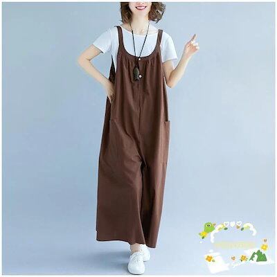 【2点ご購入で100円OFF】好評 一部即納!サロペット レディース ワイドパンツ ガウチョパンツ オーバーオール オールインワン 春 秋 カジュアル ゆったり 体型カバー シンプル | OPEN-korea
