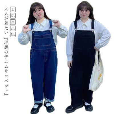 オーバーオール デニム サロペット レディース デニムサロペット オールインワン パンツ ボトムス ワイドパンツ デニムパンツ ロング 大きいサイズ ポケット 体型カバー 大人 ゆったり きれいめ カ | OPEN-korea