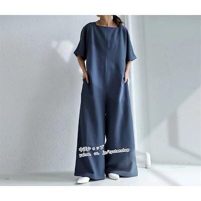 Hot!!!オールインワン レディース40代50代 春夏秋 オーバーオール バックジップ おしゃれ ワイドパンツ ゆったり 半袖 スクエアネック 体型カバー 無地 カジュアル | OPEN-korea