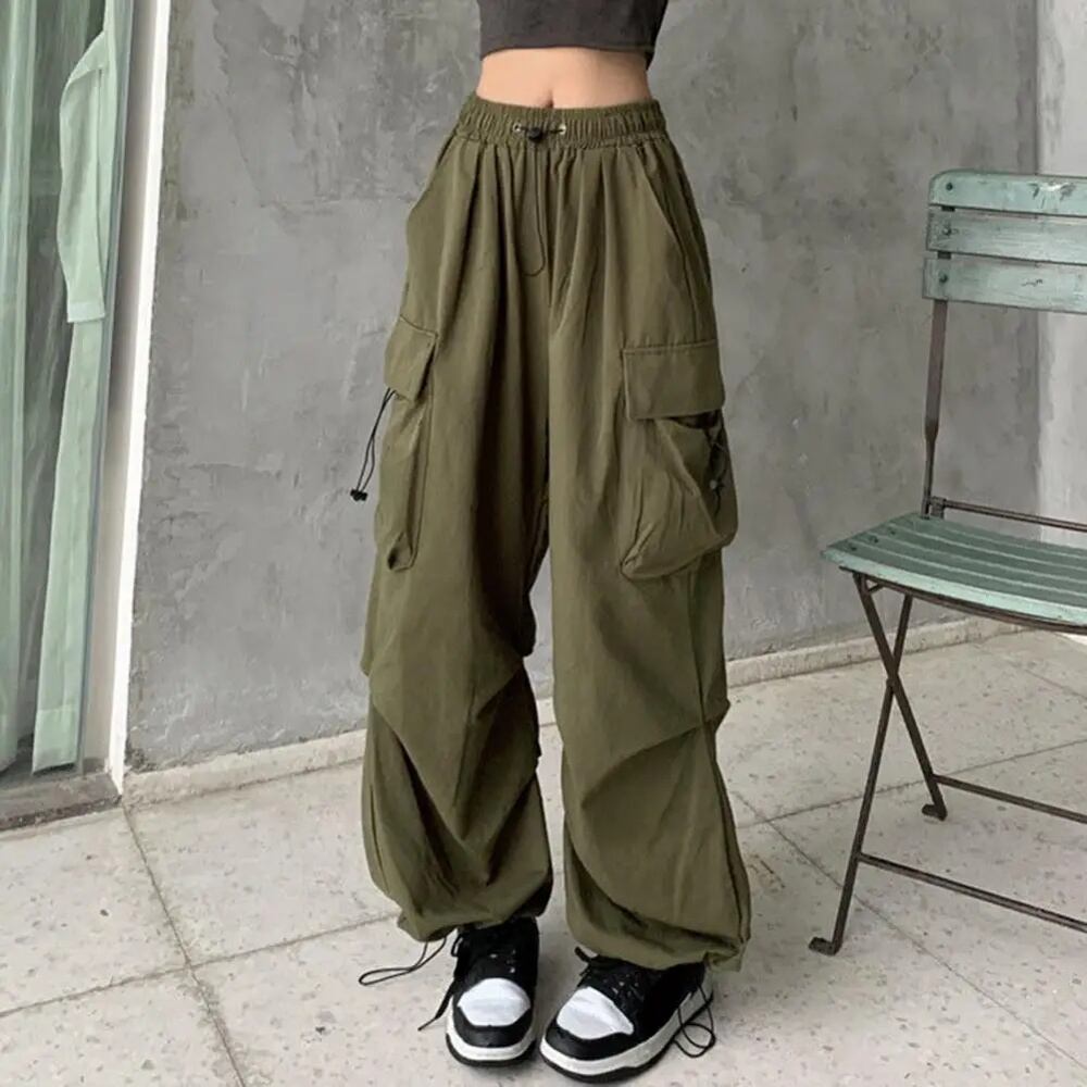 女性用ブラックパラシュートパンツ,カーゴパンツ,特大ポケット,ワイドレッグ,バギー,ストリートウェア,原宿 y2k ボトムス T240831223320_01