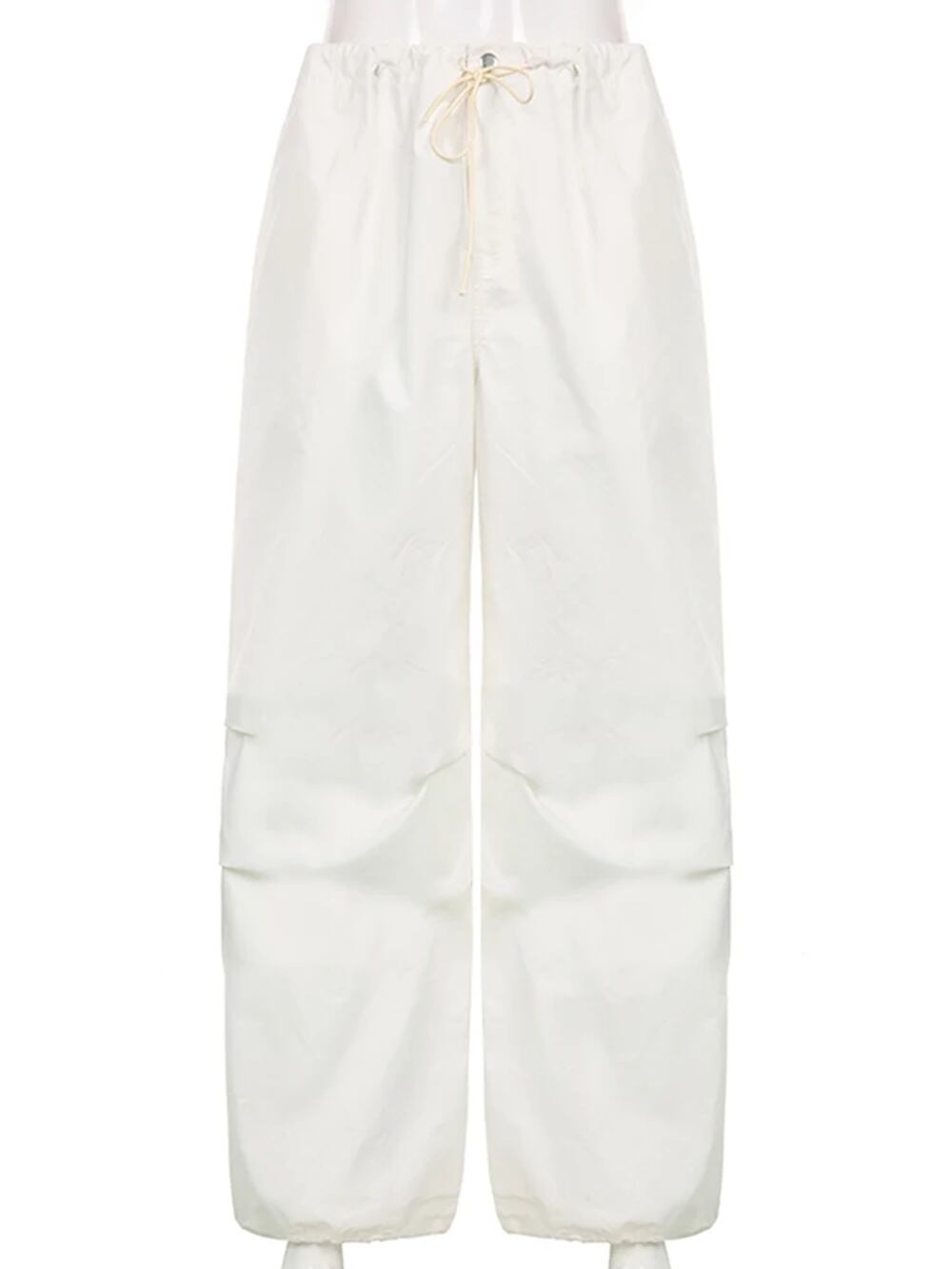 Sweetown-女性のカジュアルなバギーワイドレッグスウェットパンツ、白いルーズドローストリングパンツ、ローウエストストリートウェア、カーゴパンツ、ヒッピージョガー y2k ボトムス T240831223617_01 | OPEN-korea