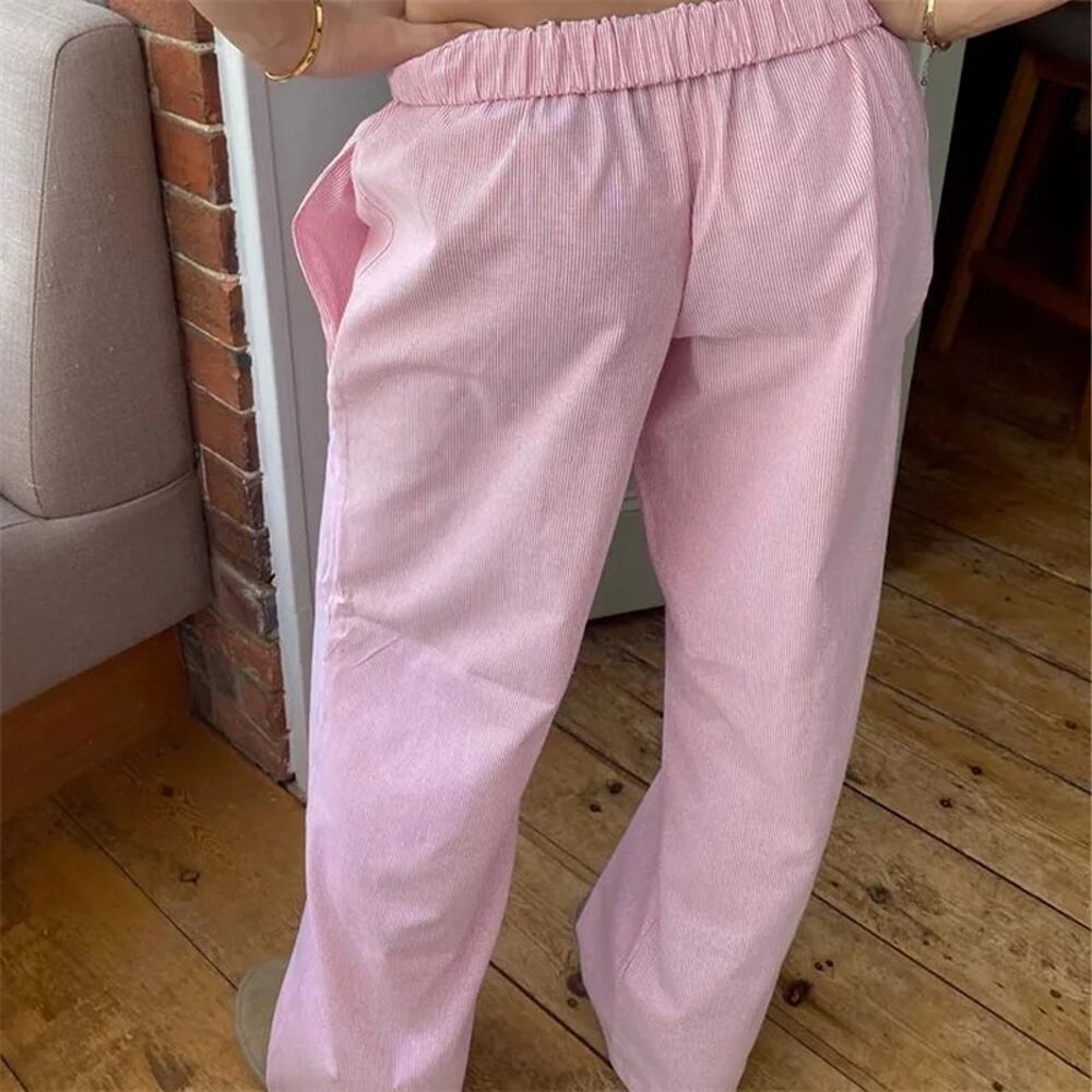 Xingqing-女性のストライプの伸縮性のあるハイウエストパンツ、ワイドレッグバギーパンツ、レターサイン、ルーズポケットストリートウェア、y2kファッション、2024 y2k ボトムス T240831223724_02 | OPEN-korea