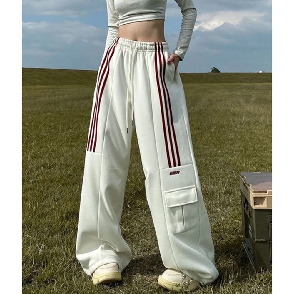 Gidyq-女性のためのレトロなストライプのゆったりとしたスウェットパンツ、ワイドレッグパンツ、アメリカのストリートウェア、大きなポケットカーゴパンツ、カジュアルな女性のパンツ、新しい y2k ボトムス T240831223805_01 | OPEN-korea
