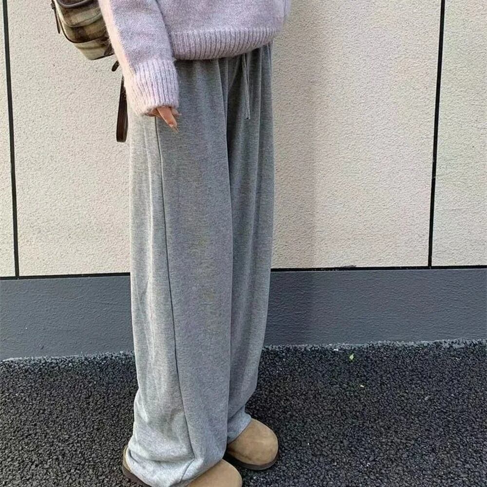 Deeptown-レディースカジュアルバギーパンツ、ハイウエスト、ワイドレッグスウェットパンツ、スポーツジョガー、ベーシックストリートウェア、ストレートパンツ、和風 y2k ボトムス T240831224114_03 | OPEN-korea