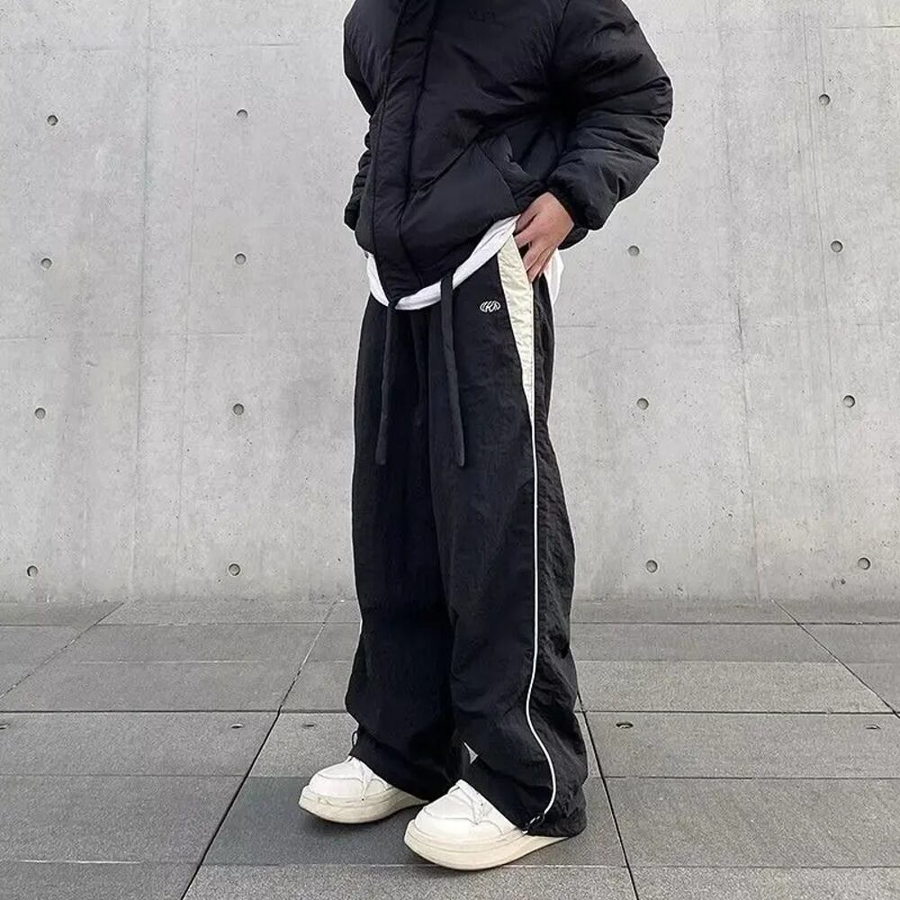 レディースカジュアルテックパンツ、ソリッドミッドウエスト巾着、ワイドレッグバギーパンツ、y2kストリートウェア、オーバーサイズスウェットパンツ、レディースジョガー、2024 y2k ボトムス T240901062532_02 | OPEN-korea