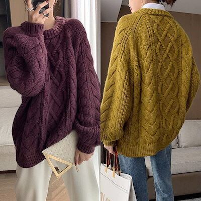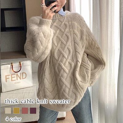 セーター レディース 厚手ケーブルニットセーター 厚手 秋 冬 洗える 白 春 ニット 長袖 クルーネック Vネック トレーナー おしゃれ ニットセーター ノルディック 柄 タートルネック ふわふわ | OPEN-korea
