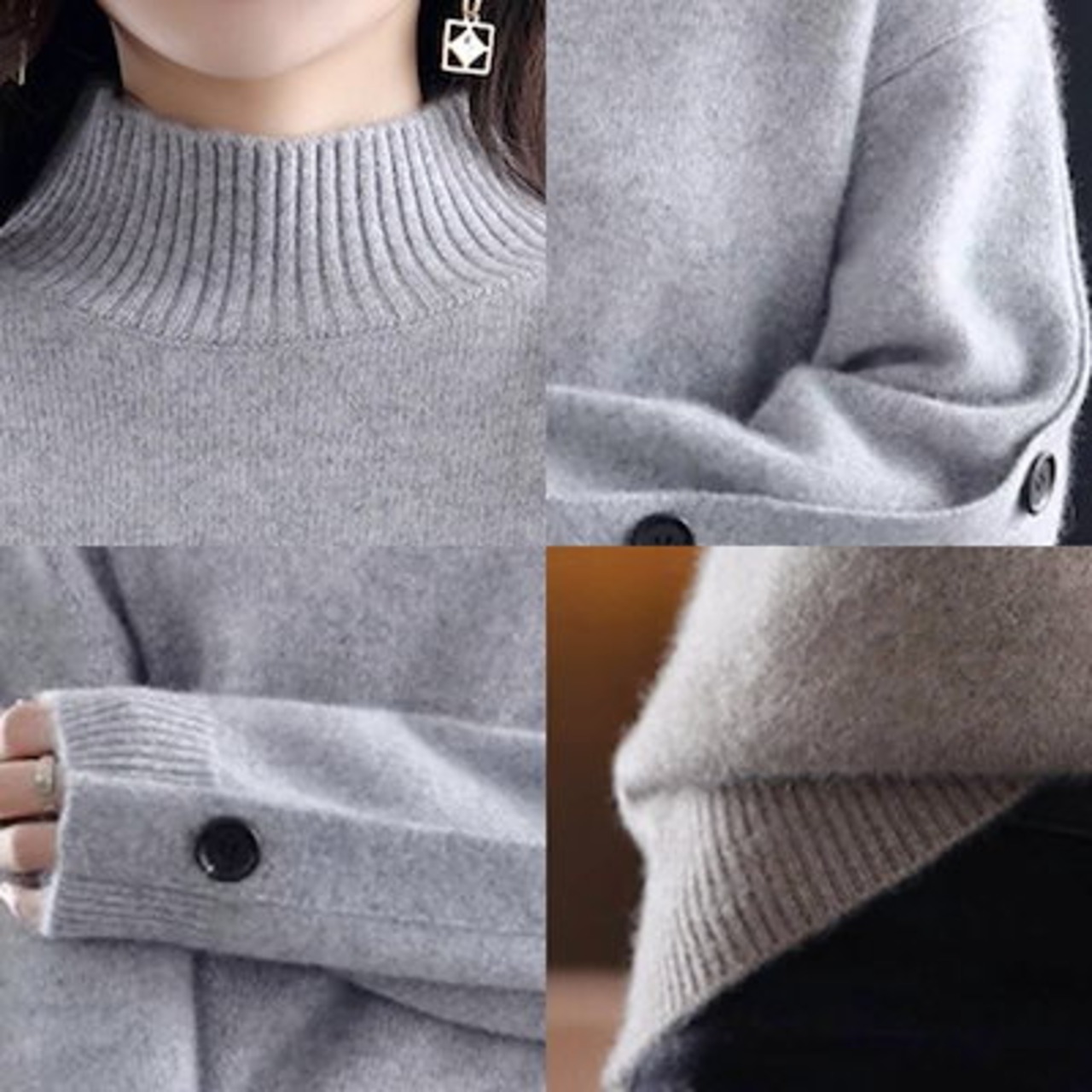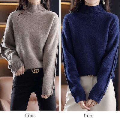 セーター レディース 袖ボタンハイネックニット 人気 ハイネック ゆる 柄 ふわふわ ざっくり 洗える 春 冬 ノルディック 長袖 黒 厚手 ニットセーター ケーブル編み おしゃれ かわいい ニット | OPEN-korea