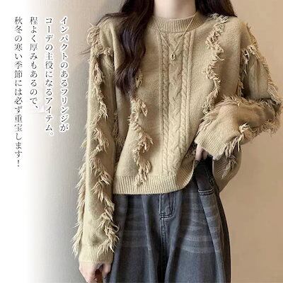 セーター レディース フリンジニットセーター ロング おしゃれ トレーナー ニットセーター 黒 ゆる 春 ざっくり 人気 Vネック ニット 厚手 ハイネック 洗える 柄 タートルネック ふわふわ ノル | OPEN-korea