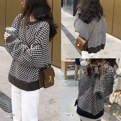 セーター レディース ルーズチェックセーター タートルネック ゆる ざっくり かわいい 厚手 ケーブル編み トレーナー 人気 白 黒 ブランド 柄 ハイネック ニットセーター 春 クルーネック おしゃ | OPEN-korea