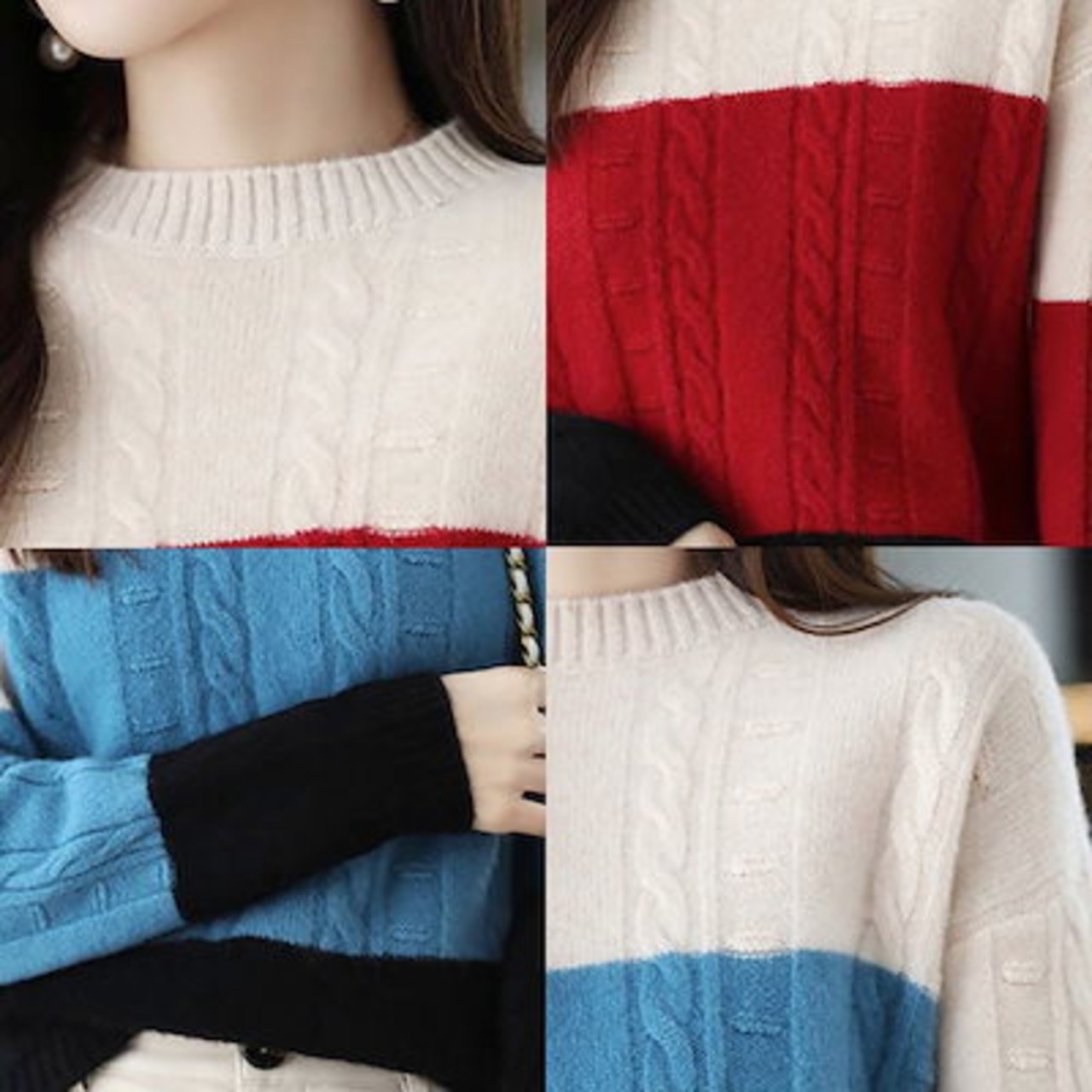 セーター レディース バイカラーケーブルニットセーター タートルネック ゆる ざっくり かわいい 厚手 ケーブル編み トレーナー 人気 白 黒 ブランド 柄 ハイネック ニットセーター 春 クルーネッ | OPEN-korea
