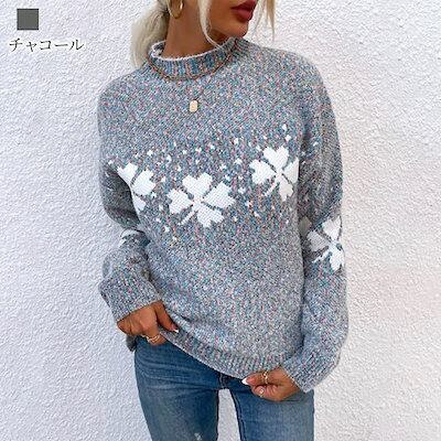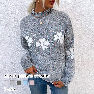 セーター レディース クローバー柄セーター タートルネック ゆる ざっくり かわいい 厚手 ケーブル編み トレーナー 人気 白 黒 ブランド 柄 ハイネック ニットセーター 春 クルーネック おしゃれ | OPEN-korea