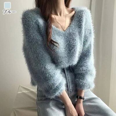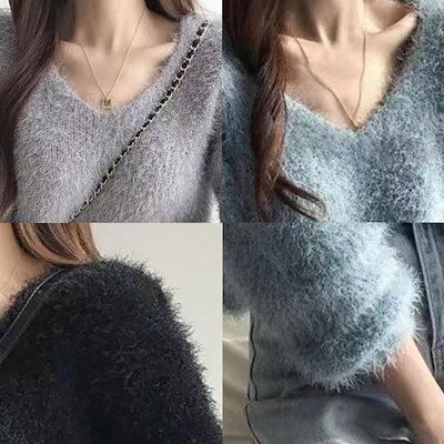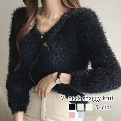 セーター レディース Vネックシャギーニット ロング おしゃれ トレーナー ニットセーター 黒 ゆる 春 ざっくり 人気 Vネック ニット 厚手 ハイネック 洗える 柄 タートルネック ふわふわ ノル | OPEN-korea