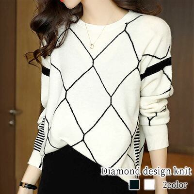 セーター レディース ダイヤ柄デザインニット クルーネック 長袖 Vネック ふわふわ ブランド 春 おしゃれ 人気 秋 タートルネック ノルディック ロング ざっくり 白 厚手 柄 ケーブル編み ゆる | OPEN-korea