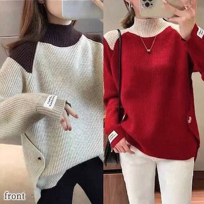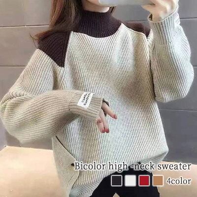 セーター レディース バイカラーハイネックセーター 柄 タートルネック ニット ノルディック クルーネック ブランド 白 トレーナー 冬 Vネック 長袖 厚手 人気 ふわふわ ケーブル編み ロング ゆ | OPEN-korea