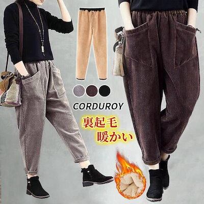 大人気上品テーパードパンツコーデュロイパンツレディース裏起毛暖かい秋冬サルエルパンツハイウエストコーデュロイパンツゆったり
