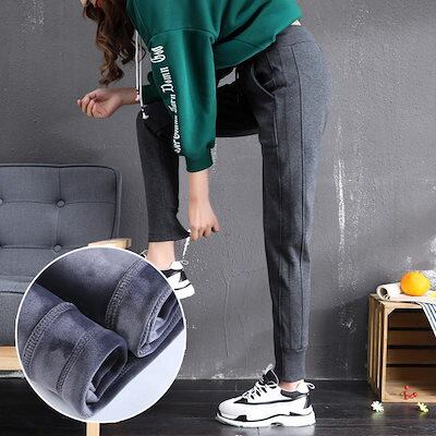 高級な質感ジョガーパンツ裏起毛レディーステーパードパンツロング丈ボトムススポーツオフィス無地ウエストゴム秋冬ロング304050