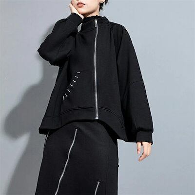 パーカー レディース 長袖 斜めジップジャケット ジャケット アウター 長袖 羽織り ブルゾン ショート丈 アシンメトリー スタンドカラー 斜めジップ ストレッチ 変形 秋 冬 無地 モード系 個性的 | OPEN-korea