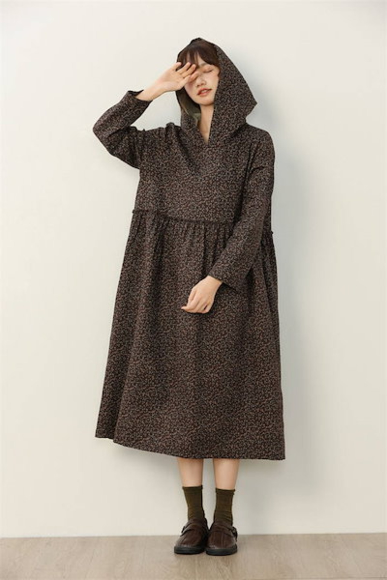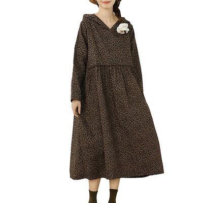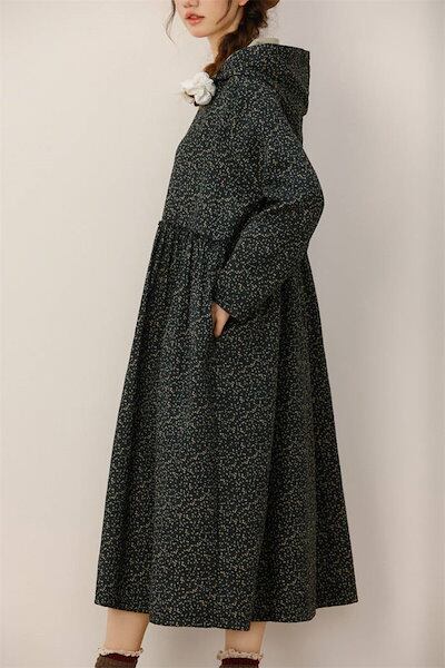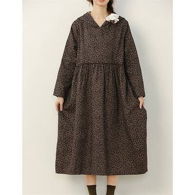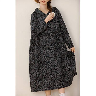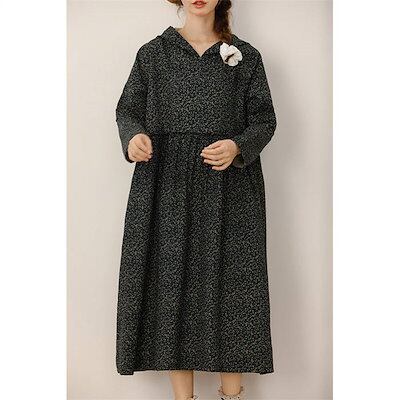 リネン ワンピース レディース ロング 秋 春 パーカー 花柄 切り替え ナチュラル コットン 長袖 ロングワンピース フレアワンピース ロング リネンワンピース 大きサイズ ゆったり 総柄 シンプル | OPEN-korea