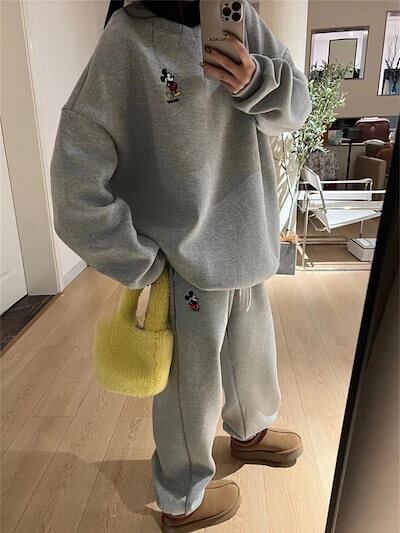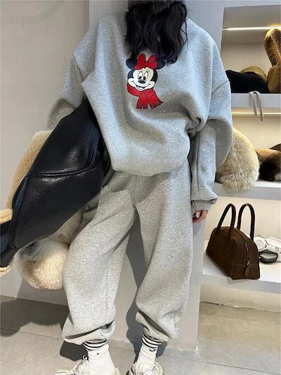 【2024新品入荷激安本日限定】刺繍入りウエスタンファッションルーズベルベットスウェットシャツセットレディースハーレムカジュアルスポーツパンツツーピースフード付きスウェットシャツ | OPEN-korea
