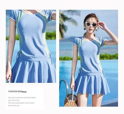 水着レディース体型カバーオトナ女子スカート露出控えめ半袖水着レディースおしゃれ体型カバー水着ママ水着カバーアップバスト盛れるショートパンツ2点上下セットラッシュガードフレアスカート | OPEN-korea