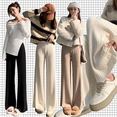 ハイウエスト フレア パンツ ワイドパンツ フレアパンツ ワイド 無地 レディース ゴム ボトムス サイドスリット ニットパンツ ワンマイルウェア きれいめ ガウチョパンツ リブニット ゆったり ロン | OPEN-korea