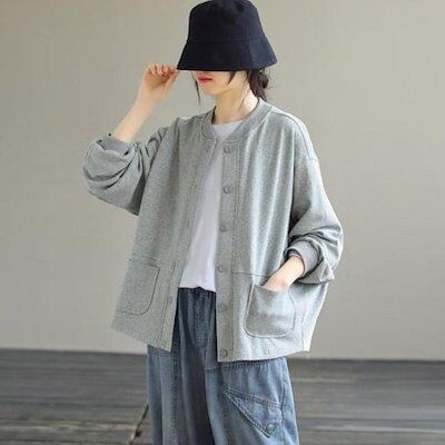 超目玉新品 レディース コート ジャケット 前開き 長袖 無地 トレーナー スウェットコート ギフト おしゃれ ノーカラー スウェット 春 秋 秋