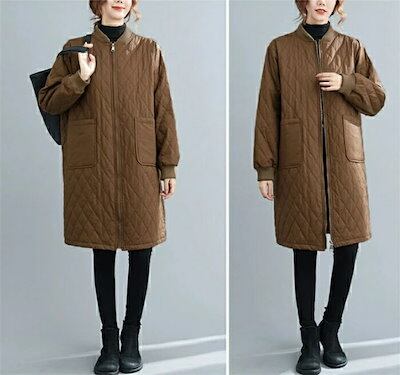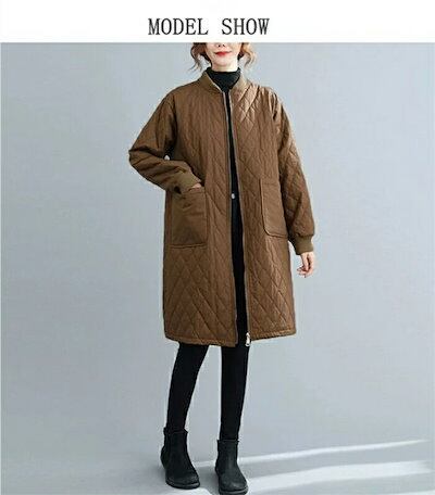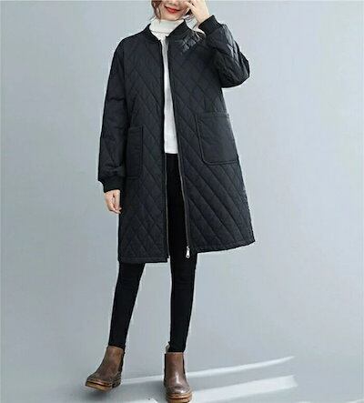 キルティングコート コート レディース ロング ブルゾン 中綿ジャンパー キルティング ジャケット 中綿コート コート アウター ロングコート カジュアル 軽い 無地 薄手 暖かい 30代 50代 黒 | OPEN-korea