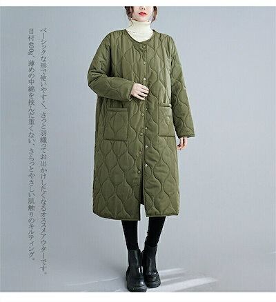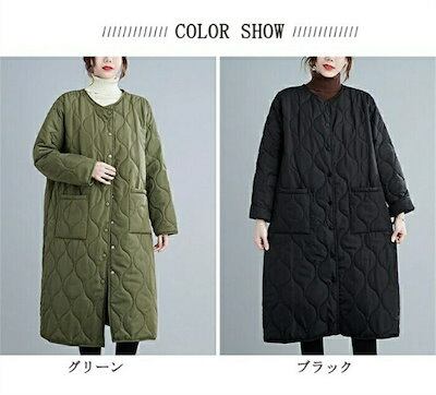 キルティングコート レディース コート アウター ロングコート 中綿コート ブルゾン ノーカラー 中綿ジャンパー キルティング 防寒 ジャケット 防寒コート 軽い ゆったり 無地 暖かい カジュアル | OPEN-korea