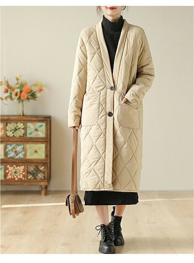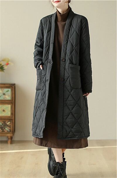キルティングコート レディース コート アウター ロングコート 中綿コート ロング丈 ブルゾン ノーカラー 薄手 キルティングジャケット キルティング 防寒 ミモレ丈 ジャケット 中綿 防寒コート 無 | OPEN-korea