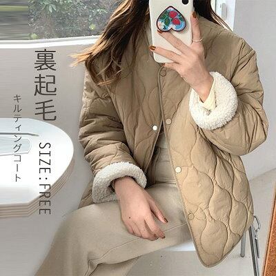 キルティングコートレディースコートキルティングコートジャケット秋冬アウターショート丈コートボアコート裏起毛ショート丈中綿コートリバーシブルブルゾンジャケットキルティングノーカラー裏ボアボアゆったり冬暖 | OPEN-korea